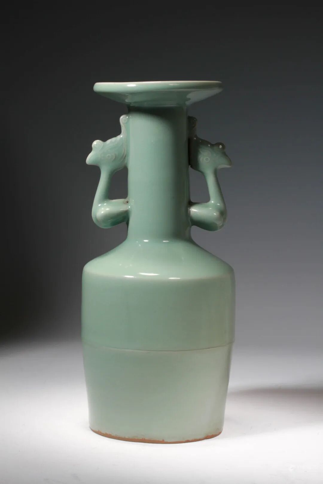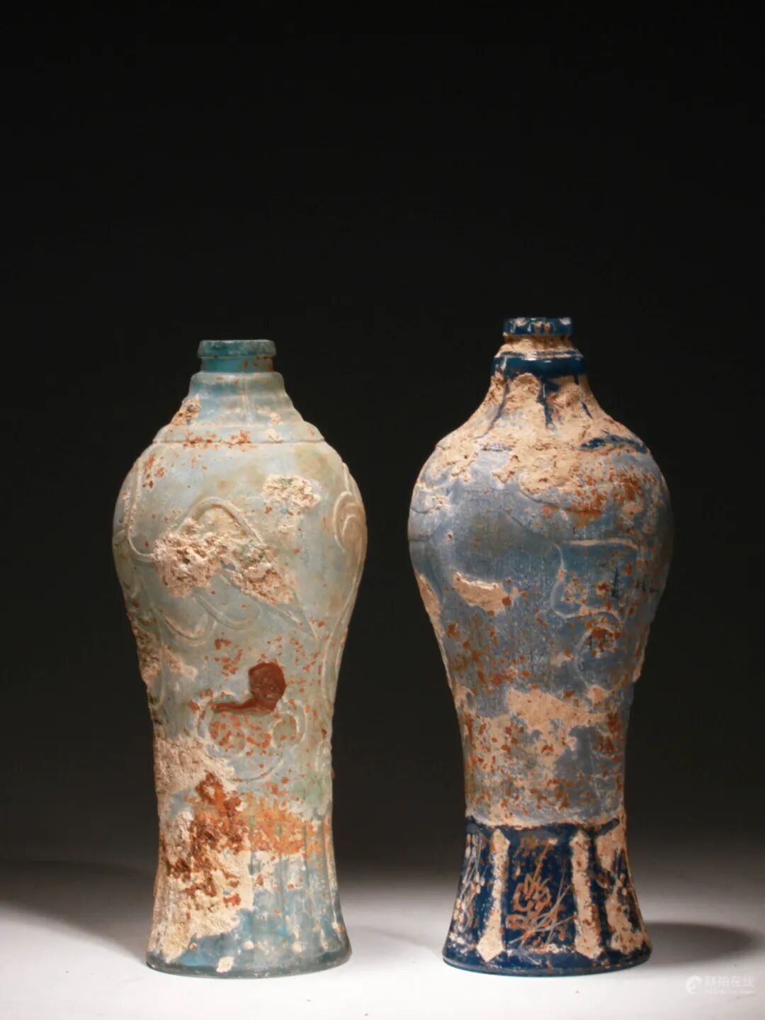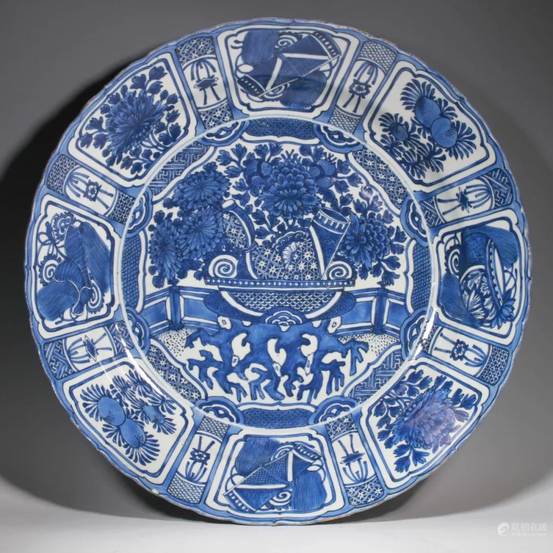 辰砂又称朱砂、丹砂,为粒状或块状集合体,主要成分为硫化汞,呈颗粒状或块片状,鲜红色或暗红色,具光泽。窑变釉是唐英督理景德镇御窑厂时仿钧窑釉色所繁衍出的一个创新品种,它将含有不同呈色元素的色釉融于一体,在窑炉中高温烧制,釉料相互交融,自然流淌,在熔融过程中,呈现色彩斑澜的釉色。此瓶瓶身修长,撇口,束颈,斜直腹,四方足,器形规整,釉面光亮滋润,紫红与蓝白色相互交融,如瀑飞流直下。配木座,适宜陈设观赏。明代晚期大量生产一种既有东方民族传统风格、又充满着浓郁异国情趣的青花瓷盘,这种瓷盘的内壁有六到八个开光,开光内绘各种不同题材的纹饰,是当时外销瓷中的重要品种之一,日本人称之为“芙蓉手”。本盘撇口,浅壁,塌底,圈足。通体以青花装饰。盘心绘博古纹,内壁绘锦地开光八组,开光内绘花果八宝纹,外壁开光内绘花草纹,圈足内露胎无款识。德化窑以白瓷雕塑神佛像著称,尤以观音像最受人喜爱欢迎。此件观音眉目细长,法相端庄,发髻高束,头戴风帽,身着广袖通肩长衣,胸襟半袒,佩戴璎珞珠串,单膝屈起,右手置于膝盖之上,左手托如意右手之上于,人物造型生动,衣纹圆润飘逸,通体通体施白釉,中空,胎质洁白致密,釉色清亮泽润,晶莹如玉,令人赏心悦目。起拍价格:100,000 日元