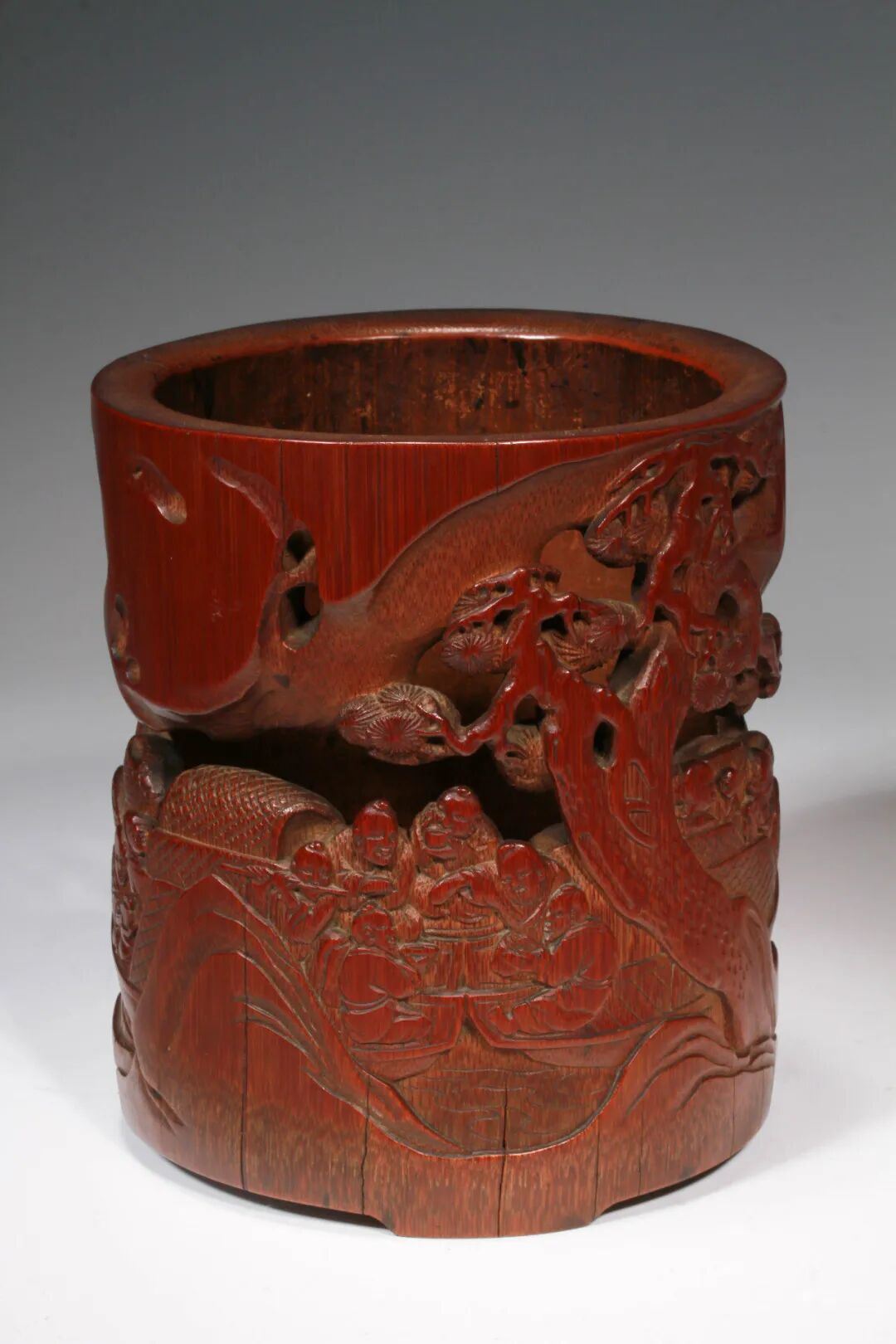 明代漆器工艺的发展已相当成熟。漆制品数量众多,品种新颖,制作精良,特别是在工艺上采用多种髹法相结合的手法使其从实用器上升为观赏价值极高的艺术品。此件剔红香盒为圆形,造型小巧可爱,通体髹朱漆,漆层肥厚。底纹为方格纹内饰多瓣小花,寓意繁花遍地。盖面在底纹之上雕刻牡丹,形象逼真,栩栩如生。整器形制规整,雕工细腻,刀法纯熟,章法有致,耐人寻味。本件拍品为明代凤首,摆放等级很高。取精铜铸造,采用鎏金工艺,质地精良,包浆醇厚。整体造型华美瑰丽,凤首昂然于前,凤目细长有神,翎羽刻画分明,栩栩如生。形制庄严精巧,威风凛凛,具有极高的收藏价值和艺术价值。景泰蓝,中国的著名特种工艺品之一。它不仅运用了青铜工艺,又吸收了瓷器工艺,同时大量引进传统绘画和雕刻技艺,堪称集中国传统工艺之大成。因其在明朝景泰年间盛行,制作技艺比较成熟,使用的珐琅釉多以蓝色为主,故而得名“景泰蓝”。本器小巧精致,器身喇叭口,长颈,鼓腹下敛,圈足,形似凤尾。器身通体以掐丝工艺饰缠枝番莲花纹,并填以珐琅料。色泽沉稳凝重,表面布满砂眼,有明显的明代特征。纹饰线条流畅,十分精美。Lot 3171 波斯 二世纪 玻璃梅瓶 两点一组作为“火与沙”的结晶,玻璃的价值曾堪比黄金。早在公元前3000年,叙利亚地区即有玻璃品生产。此后,从两河流域到北非,从希腊、意大利到中亚再到东亚,玻璃见证了东西方文明交流中科学技术、材料工艺、多边贸易、文化艺术的传播、交流、演变和融合。本组拍品梅瓶,器型端庄典雅,工艺精湛挺拔,波斯的玻璃瓶,是当时东西方世界文化的交流的一个佐证。本器整体造型敦厚,古朴端庄,圆口,贯耳,椭圆鼓腹,圈足。全身饰以饕餮兽纹,并设乳钉成兽目。在古时作为一种礼器,主要为盛酒或盛水所用,是统治者权力和地位的象征,展示了古代青铜铸造的非凡技巧。尺寸:H 14.5cm,L 12.5cm,W 11.2cm该笔筒呈圆筒状,以竹节横膜为底,下承三矮足,包浆红润自然。竹材厚壁,外壁以去地高浮雕及镂雕技法为主雕刻了松下人物故事图。画面刻划了溪水之畔,奇木古松立于山石之间,人物或交谈,或吹笛,或饮茶,或劳作。画面雕琢精细,立体感强,景致错落,观之极富层次感。人物神情姿态各异,衣褶清晰,眉目生动,情趣盎然。整器古朴精美,色泽明润,刀法圆熟有力,是一件艺术佳品。卣,为中国古代酒器,是商周时期极具代表的青铜礼器之一。盛行于商代跟西周时期。口椭圆形,足为圈形,有盖和提梁,腹深,底部有脚,周围雕刻精美的工艺图案。本器体呈椭圆形,束颈,垂腹,圈足,肩部有双耳,绳纹提梁。圆鼓盖,盖面及瓶身以雷纹作底,全身装饰饕餮纹,并以夔龙纹作为间隔,设乳钉为兽目,突出于壁。整器造型规整,纹饰繁复,古意盘然,是非常难得的青铜卣器精品,为本次拍场之重器。尺寸:H 20.5cm,L 16cm,W 11cm竹雕是中国传统的手工艺门类,题材众多,其中以人物类竹雕存世最少,因其需以圆雕技法雕琢,难度较大,同时制作时为了器形纹饰的需要,必须交错运用阴刻与阳雕的技法雕刻,技巧性较强。此件罗汉像以竹根雕成,出筋。罗汉呈坐姿,圆首大耳,凸眉凹目,眉头微蹙,嘴唇闭合,形象极为突出,显示出僧人苦修禅定之神情。匠人采用圆雕技法,刀法老辣,刻工精湛,品相完好,神韵十足,堪为佳作。此尊佛像肉髻高隆,排列规整,面庞丰腴,弯眉与鼻胫相连,双目微阖,宝相庄严,气度恢宏。身着袒右式袈裟,一角反搭盖住右肩,胸部露出内束裙腰,转折流畅自然,袈裟上錾刻有细致精美花纹。双腿结全跏趺坐,左手置腹前结禅定印,右手于垂膝前结触地印,造型生动,线条秀美。佛像通体以纯铜打造,表面鎏金,包浆厚重,开脸精美,更显悠远神韵。觥是中国古代盛酒器。流行于商晚期至西周早期。一般作椭圆形或方形器身。兽头形盖,前部有宽口流,后部常有鋬,器底置圈足、三足或多足,以圈足为多见。我国过去流散在海外的一大批商周青铜器中,包括有多件铜觥。本器为兽形,以青铜制,铜质上乘,器分盖、体两部分铸造,觥盖前端作有角兽头,古兽昂首而出,气势庄严。器身呈方型,通体饰兽面纹和夔纹,曲口宽流,效果华丽,厚重大气,工艺纯熟灵巧,不可多得。北魏的造像艺术既有中国的传统造像基础,同时也融入了印度佛教造像艺术,雄伟而严肃的气质,证明了印度佛教传入中国逐渐汉化的演进趋势。本件佛像为石雕残件,佛像身着袒右式袈裟,肉髻高耸,面庞丰腴,面带微笑,气度恢宏。造像雕像比例适宜,庄严合度,线条拙朴而又娴熟简练,凝厚沉寂中带有雄劲刚健,气韵自然,神形兼备,是北魏时间的典范杰作。Lot 4034 天平时代 佛说贝多树下十二国缘经
