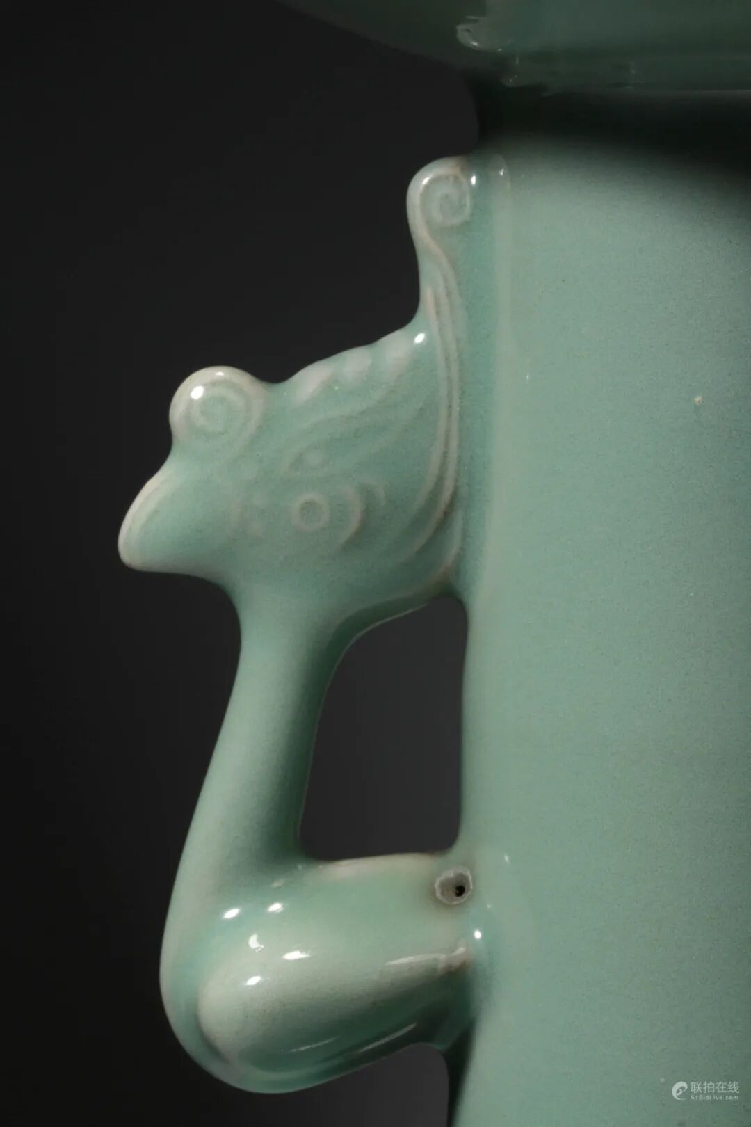 百花不落地指的是将粉彩与金彩结合,各色花朵将整个画面填满,不露出瓷底,也不露出花朵的枝干。百花如同天女散花,浮于空中,故称“百花不落地”。为清乾隆、嘉庆时期景德镇粉彩瓷器之珍贵隽品,历为藏家所珍。此对百花不落地碗绚丽妍美,为乾隆御瓷。碗分盖、身两部分,碗敞口,折腰,腹部斜收,下设圈足。全器以粉彩满饰各色花卉,百花团簇似锦,画工精细繁密,釉彩妍美多姿,处处彰显出乾隆彩瓷无与伦比的华丽与尊贵,强烈的视觉冲击表现出了极大的美感。盖钮及碗底正中以矾红书「大清乾隆年制」六字三行篆书款。粉彩夔凤纹寓意“天下太平,万物安宁”,其纹饰盛行于各种官窑器物,并一直延续至清代晚期。本碗撇口,弧腹,圈足。器形周正,釉面匀净,胎质细腻,碗内白釉光素,外口沿和近底处各饰金线一周,腹部以粉彩绘夔凤穿花纹饰,各色夔凤展翅飞舞,与周边花朵翅蔓相绕,繁而有序。画工精细,线条柔和,色彩艳丽,构图饱满而不失清爽。底落「大清道光年制」楷书款,工整清秀,为光绪官窑精品。此盘为四方形,外壁斜直,圈足。整器造型规整古朴,胎釉精细,内外壁满绘山水人物图案,青花发色淡雅,釉色莹润,笔触细致,典雅端庄。嘉庆一朝国运开始走下坡路,在父皇乾隆皇帝光环的照耀下,嘉庆这位极其简朴皇帝可谓中规中矩,御窑官窑也延续乾隆的旧样,此对方盘底落「大清嘉庆年制」六字三行篆书款,书写风格为嘉庆官窑之款识,盘身中央纹饰开窗画渔樵耕读,内器壁一圈画瓜瓞连绵而外壁通绘山水纹,乃嘉庆一朝官窑独有之纹饰,此青花四方盘一对乃上乘佳作,弥足珍贵。Lot 3098 西汉 镀金凤凰置物