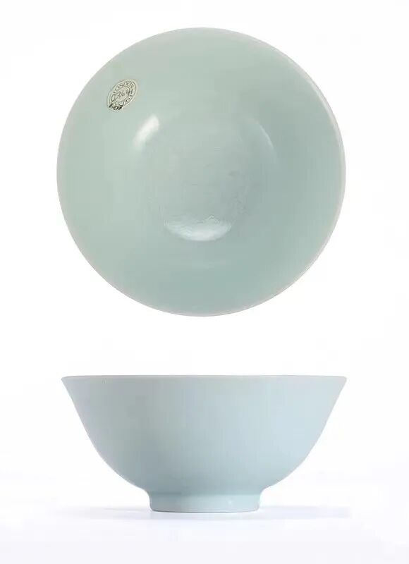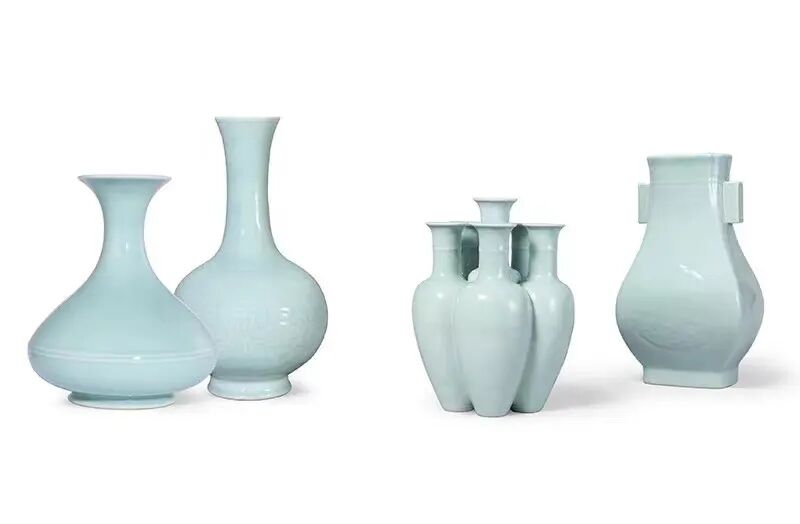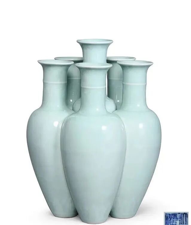 清乾隆 粉青釉模印如意纹六孔转心瓶