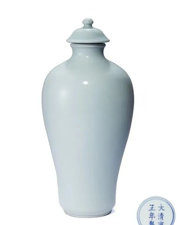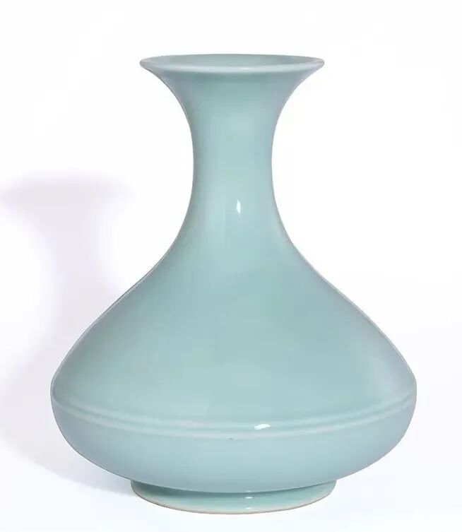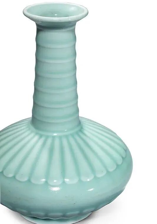 清雍正 粉青釉浮雕菊瓣弦纹瓶