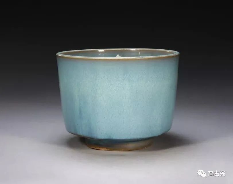 钧窑应分为两大类,一类为单色作品,天蓝色为主,亦见红釉:另类为色斑作品,另文探讨。天蓝釉作品由宋至金至元发扬光大,形成钧窑作品的主流,尤其以民间器皿为主,遍及华北地区。这类天蓝色作品的呈色原理与前面的唐之蓝釉和后面的元之蓝釉完全不同,它反倒与青釉同属家族,以铁呈色,只不过钧窑在烧造上出现了技术革命,乳光釉使它的蓝光散射,有“异光”,美不胜收。