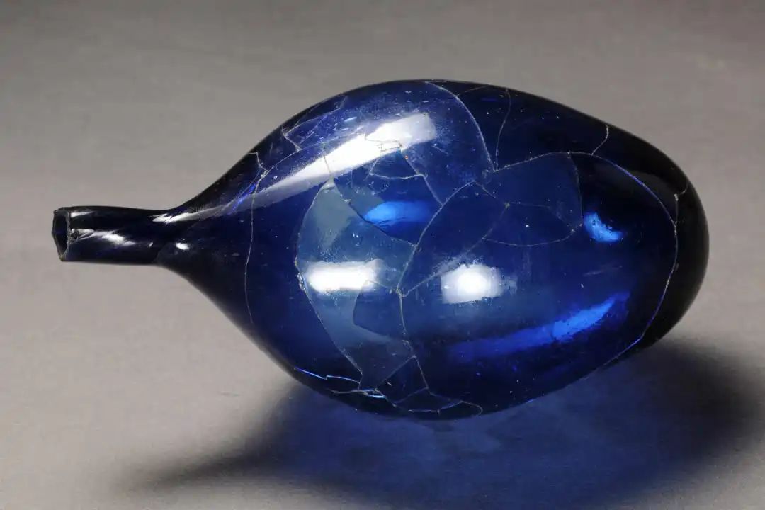 唐 素面圆底细颈蓝琉璃瓶 法门寺