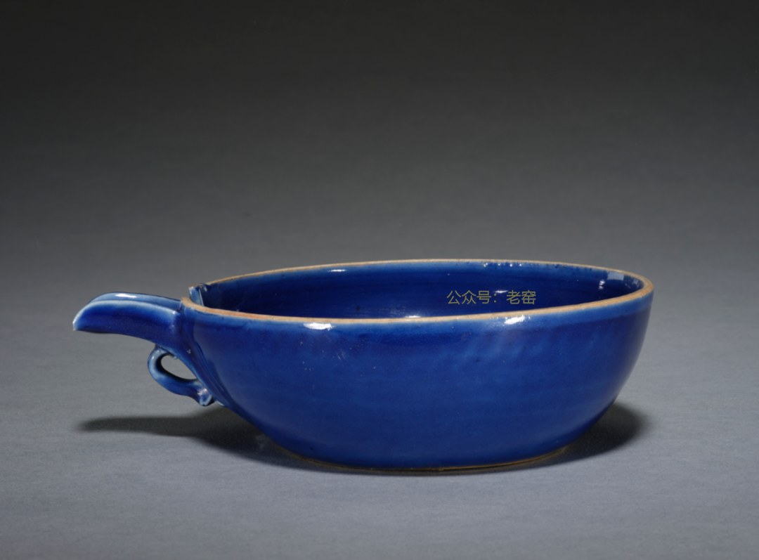 另一种是单一的蓝釉品种,器物表面纯以蓝色为装饰釉色,这种器物相对于前者还是较为少见的。
