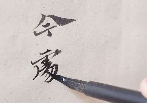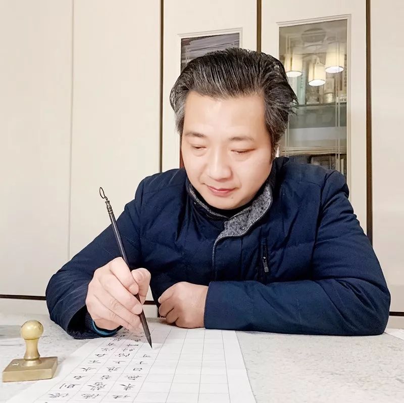▲王家任老师使用书法思考小楷笔“双馨”