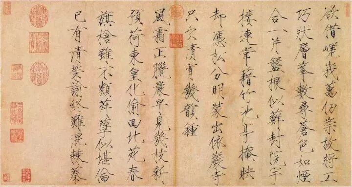 瘦金体是宋徽宗自创的一种文体,清秀隽永,铁画银钩,金镂之妙,细比毫发,素有“风流天子出崇观,铁画银钩字字端”的超高评价。