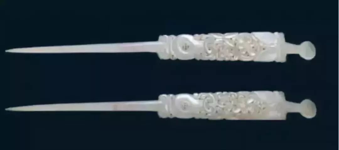 首都博物馆明代花蝶纹玉扁簪 (1对)