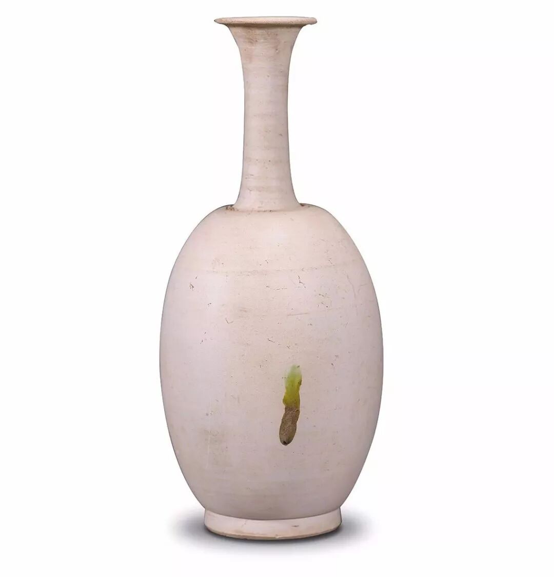 青绿釉葫芦形执壶,器物呈葫芦形,造型优美。独特之处在于少见的釉色,器物通体施釉,色泽淡绿,胎质酥松,有化妆土,圈足底无釉。据深圳望野博物馆工作人员考:此类产品属山西东南部的长治周边地区制品,此地宋、金时归河东路泽州管辖。目前考古发掘尚未见到完整的窑厂遗存,但就器物比对和调查,这类器物应属泽州地区烧造。以往,在晋东南和西安一带的遗址、墓葬中屡见此类产品,都将其归入了巩县窑或邢窑。