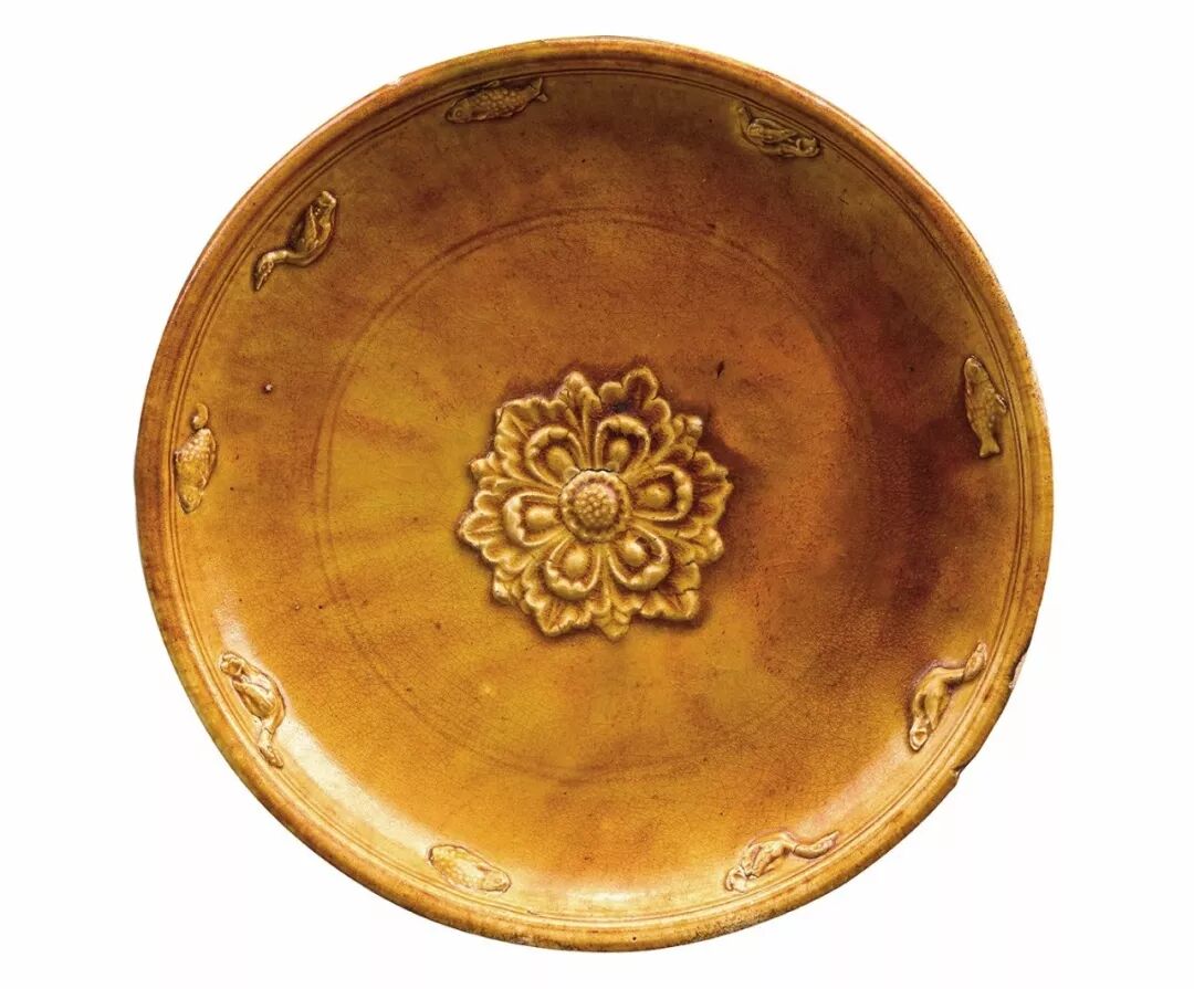 通过许多带有佛教特征的器具去窥看唐人“礼佛慎终”的一面。比如,多件带有“宝相花”纹饰特征的器具,隋唐时期出现的宝相花图案与佛教有密切关系。它的图案中蕴含着深刻的佛学内涵,它以圣洁的莲花为主要造型依据,吸收了汉晋以来传统的云气纹图样,融入了中亚地域特色的缠枝忍冬和海石榴等形象,端庄典雅、雍容华贵,又极富大唐气韵。唐三彩器物中,多采用划花、印花、堆贴等手法,将宝相花纹样装饰于盘、碗内部中央,壶、罐的腹部或肩部。