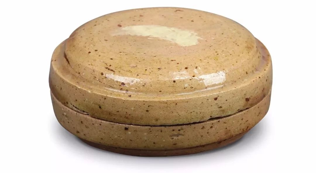 唐 巩县窑黄釉刻“朱合”款盖盒