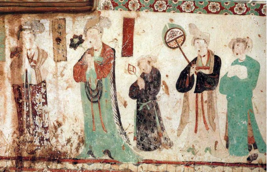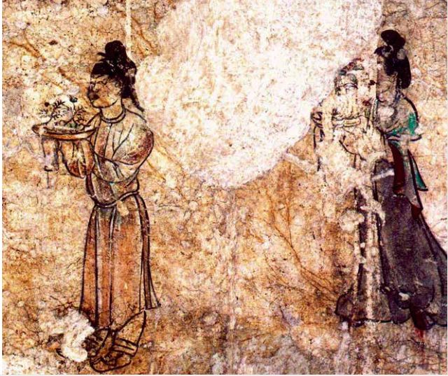 唐 乾陵章怀太子墓壁画《托盆景仕女图》