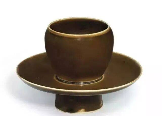 宋 定窑酱釉盏托