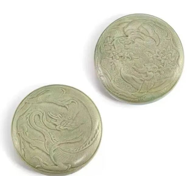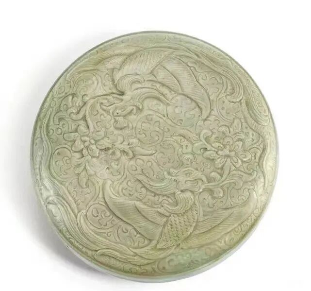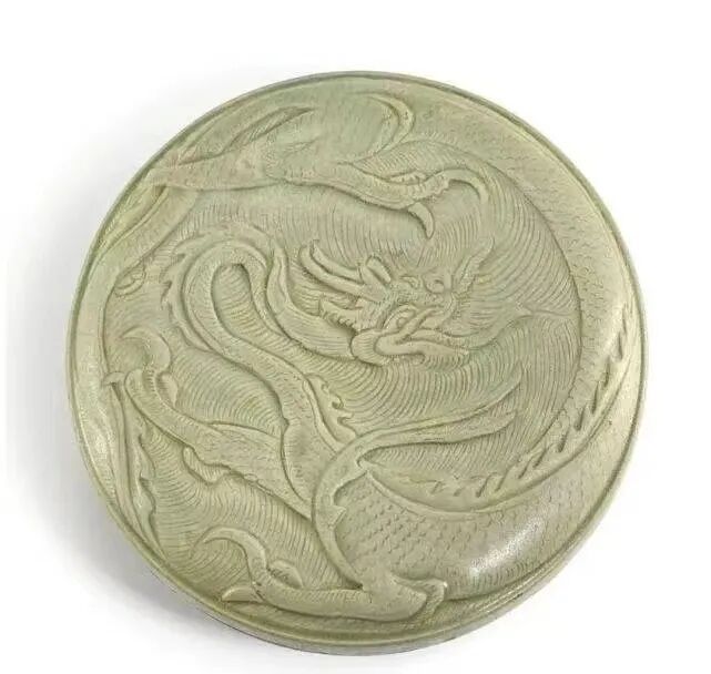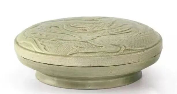 五代 越窑青釉刻龙凤纹盖盒