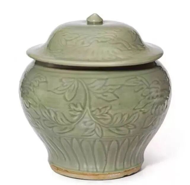 宋/明初 龙泉青釉牡丹纹盖罐