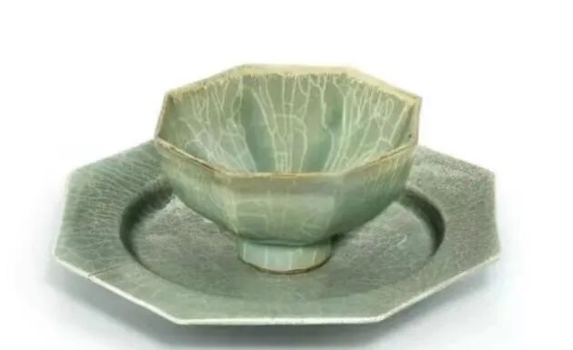 宋 龙泉官釉八方杯及盘