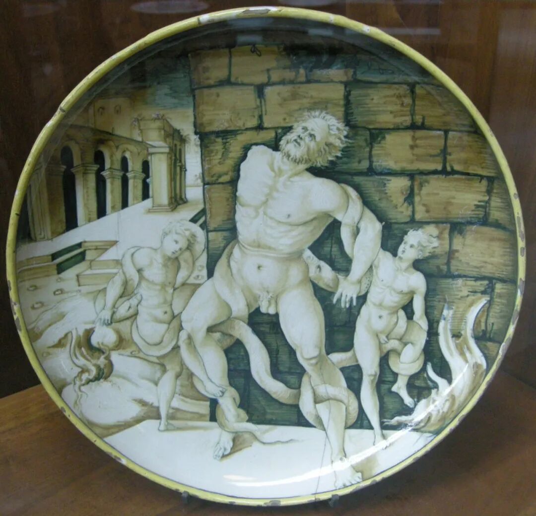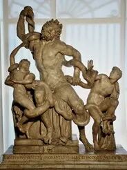 在梵蒂冈博物馆的贝尔维德庭院中,矗立着一座古罗马雕塑“拉奥孔及其子群像”。拉奥孔是三千年前特洛伊古国的一名大祭司。当时的特洛伊是一个因地利人和而发达繁荣的国度,这块地中海沿岸最富饶之地被贪婪野蛮的希腊人盯上,于是爆发了希腊联军入侵特洛伊的特洛伊战争。西方战争史上著名的“木马计”就发生在这场战争中,而拉奥孔则是那位识破了希腊人诡计的特洛伊先知,却因泄露天机而被希腊人的神——雅典娜、阿波罗以及海神波塞冬降下巨蟒处以极刑。古罗马大理石群雕《拉奥孔及其子群像》描绘的就是天神降下巨蟒袭击拉奥孔和儿子们的情景。![]()