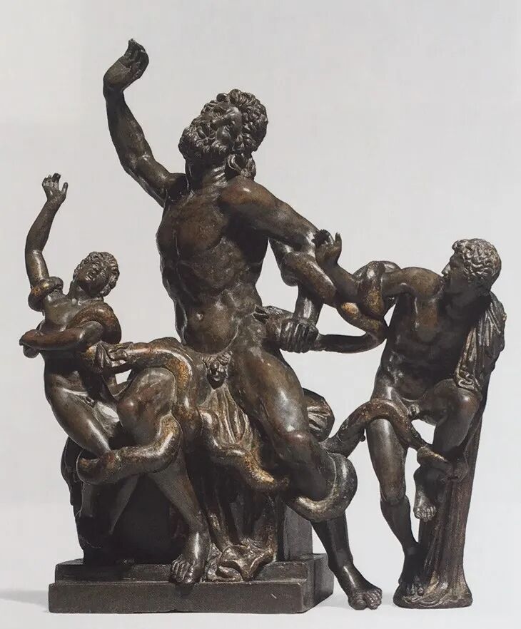 ▲大理石雕塑《拉奥孔及其子群像》(1520-1525)文艺复兴佛罗伦萨雕塑家巴乔·班迪内里作班迪内里是受教宗利奥十世(Leo PP. X,1475-1521)之命为梵蒂冈的《拉奥孔及其子群像》制作一个复制品的,此后又有一些基于班迪内里版本拉奥孔像的青铜复制品。同一时期曼托瓦雕塑家博纳科尔西(Pier Jacopo Alari-Bonacolsi,1460-1528)就用青铜复制了拉奥孔群像。文艺复兴时期,小型青铜雕塑特别受艺术品收藏家珍视。博纳科尔西主要为曼托瓦贵族弗朗切斯科二世·贡扎加工作,这座青铜拉奥孔群像正是在贡扎加及其夫人、著名艺术赞助人伊莎贝拉·埃斯特(Isabella d'Este,1474 –1539)的积极推动之下制作的。![]()