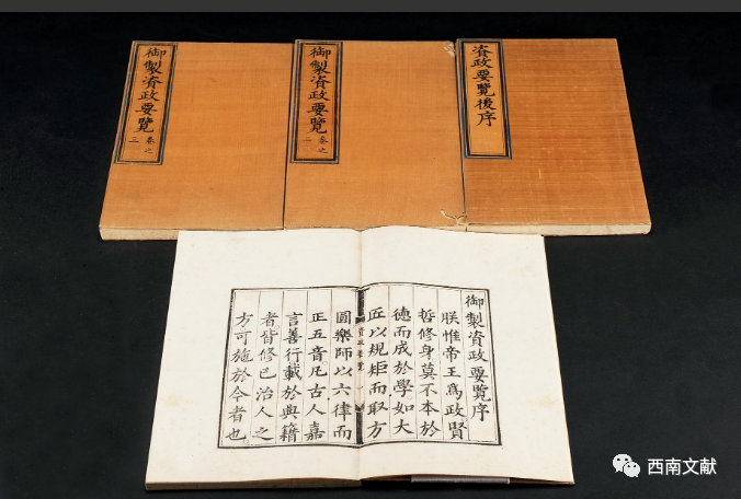 笔者在北京故宫博物院图书馆工作的20余年中,对清内府写刻的各种御用书籍时有所见,而首先映入眼帘的是书籍表面异常鲜明浓重的耀眼色彩,其次是豪华富丽的材质和精致绝伦的制作技艺,它们与一般官、私、坊间书籍浅淡简朴的装帧风格形成了鲜明的对比。望着牛令人赏心悦目并叹为观止的杰作,开始时以为所有的装潢手段都是为增添书籍的美观而采用的。但是, 反复观察之后,此类信息在头脑中积累到一定数量(大约有数百种以上),便逐渐发现每种书面色彩只选用了众多色彩中有限的几种,且这几种色彩都与特定的书籍内容相关联;书籍的装潢材料和技术方法则倾尽清宫所有和所能。这一历史现象,只有从当时的社会背景中去考察。