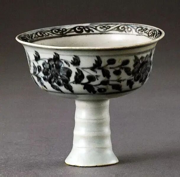 元 青花缠枝花卉纹高足腕