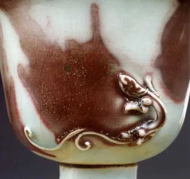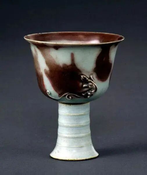 元 釉里红堆塑螭龍高足杯