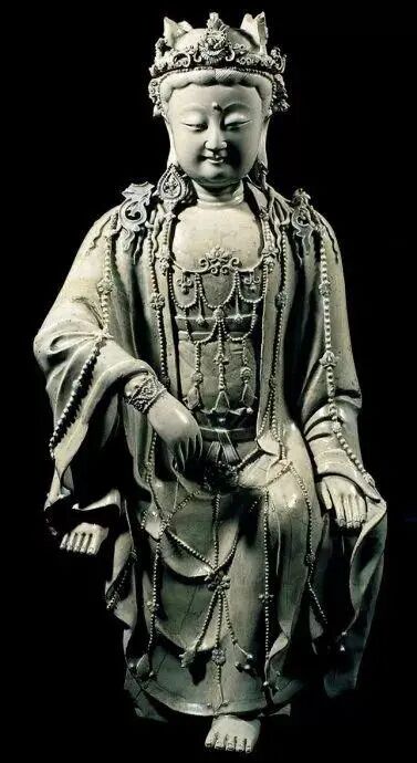 元 青釉水月观音座像