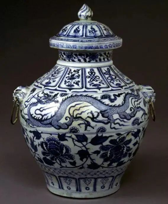 元 青花云龙赶珠缠枝牡丹纹带盖大罐