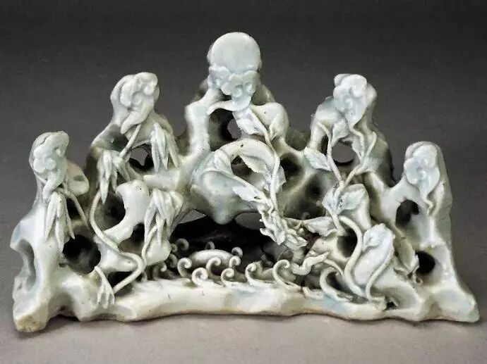 青白瓷:青白瓷是宋代景德镇主要品种。元代继续烧造,但胎、釉、造型、装饰方法等和宋代有所不同。元代青白瓷的胎子很白,坚致,细密,胎体较厚;施釉略厚,白中透青,不透明,除了部分光素无纹的以外,也有用刻、划、印、堆塑、点彩、镂雕等方法装饰的。常见刻蚜纹饰有云龙、卷枝、卷草、牡丹、莲瓣等;或在盘和碗内心凸印朵花,堆塑常用于器盖或器身的装饰,元代青白瓷器型较多,除了日常用的盘、碗、高足杯、瓶、罐、炉以外,还有一些新器型如葫芦形的执壶、扁执壶、多穆壶、匜、砚滴、笔山等。体形通常厚重饱满,瓶、罐等器下腹和胫清瘦,盘、碗体大而圈足小,都有头重脚轻的感觉。