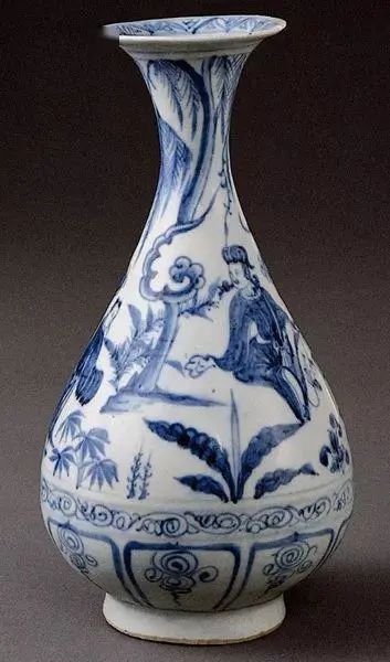 宴饮图局部:青花瓷瓶(1396年,大英博物馆藏)