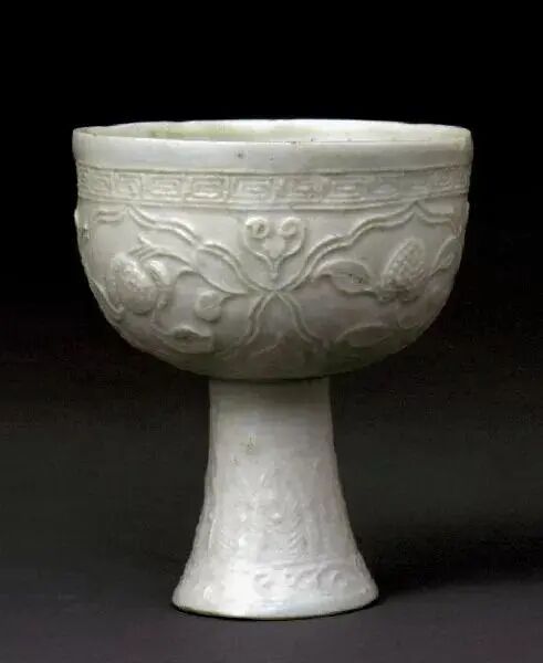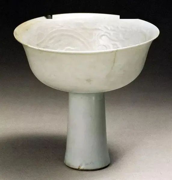 元 卵白釉雕花高足杯