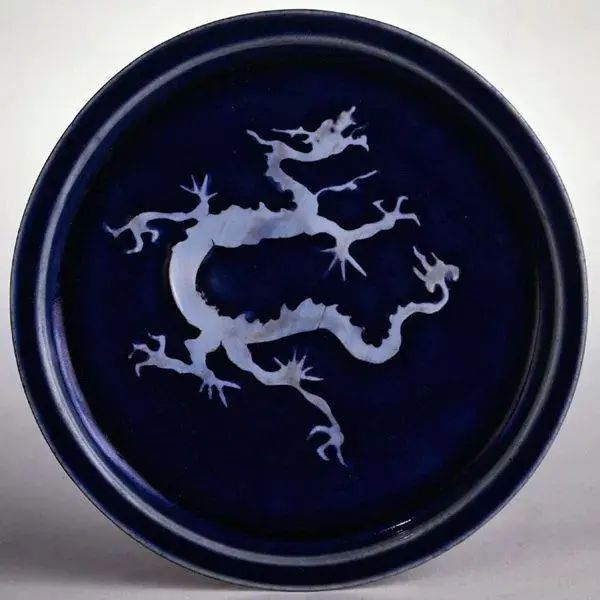 元 霁蓝釉白龙纹大盘