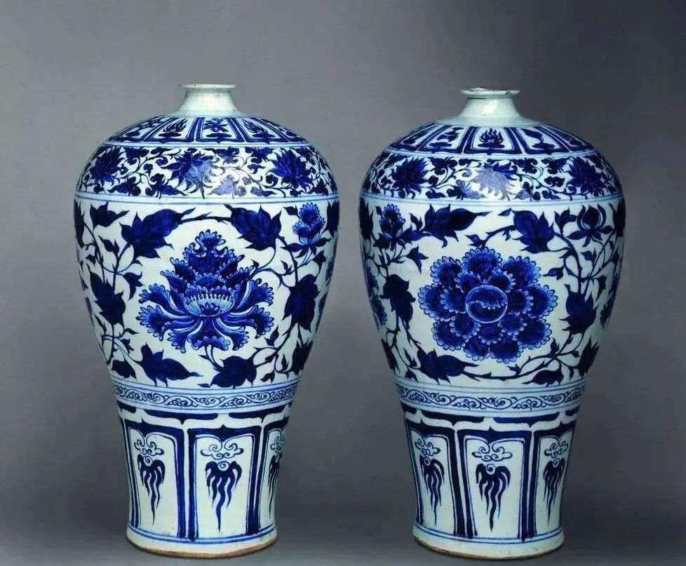 牡丹纹花梅瓶(一对)