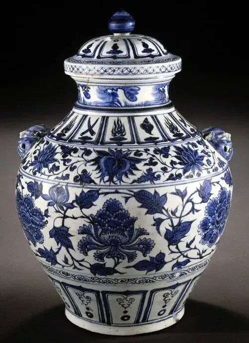 元 青花缠枝牡丹纹带盖大罐