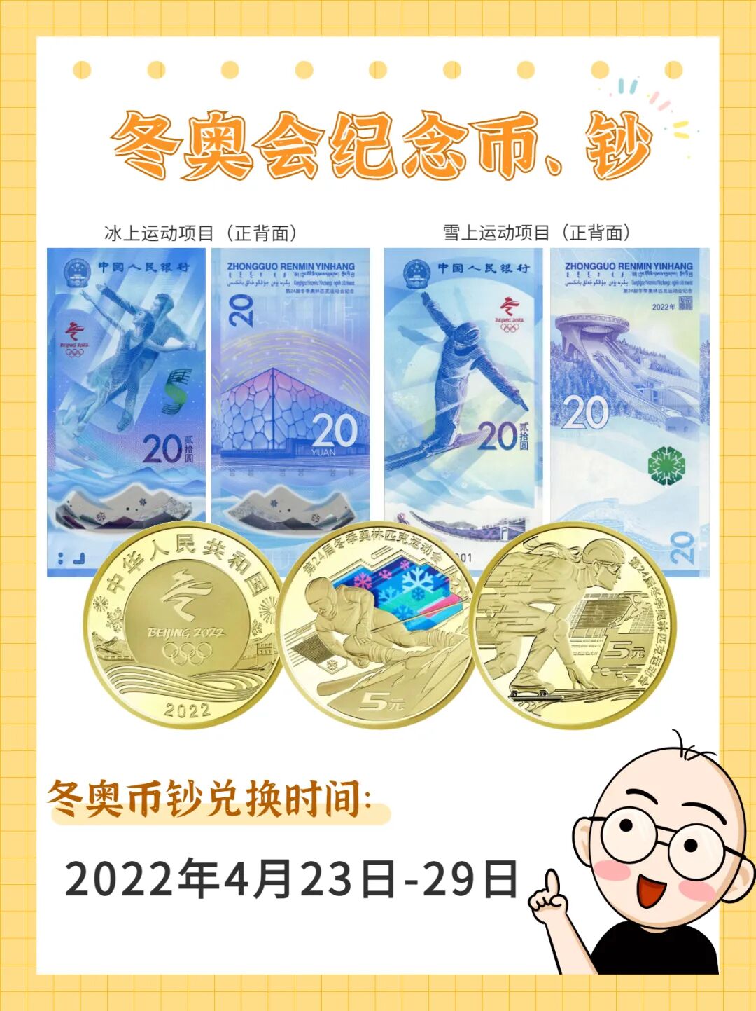 另外,深圳地区的冬奥会纪念币和纪念钞,也可以准备着兑换了。兑换时间:4月23日-4月29日。