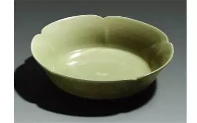 唐五瓣葵口凹底斜腹秘色瓷碟