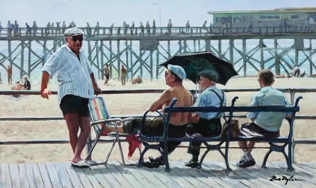 迪伦笔下的水彩画和丙烯酸颜料画没有展现出过多的情感,他试图抛弃理想化,去表现现实和图像本身。正如他所说的,“我只是随兴而画,随时随地能画,画的时候不去刻意为之,不去自我指涉,把我看到的世界客观地表达出来。”也正因如此,我们可以透过这些画看到一个真正的鲍勃·迪伦。