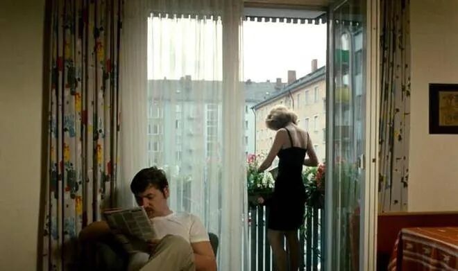 除了《花样年华》和《春光乍泄》外,该系列作品还涉及了不少或经典或小众的电影,比如悬念大师希区柯克的《后窗》。虽然不是一比一还原,但抓住了构图精髓,其重点放在了画面正中在窗口梳头发的女子身上。