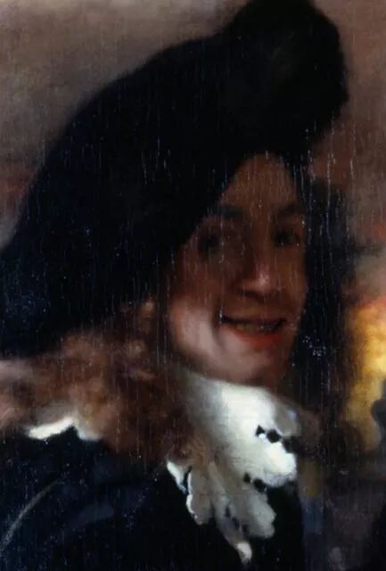 维米尔出生于荷兰代尔夫特,与哈尔斯、伦勃朗合称为荷兰三大画家,代表作品有《戴珍珠耳环的少女》、《花边女工》、《士兵与微笑的少女》。1675年,维米尔参加了防御法兰西军队的入侵而过度劳累,生活又陷于极端贫困,在贫病交加中留下妻子儿女去世了,终年43岁。从此维米尔在荷兰画坛销声匿迹,直到19世纪50年代,才被一位法国艺术评论家杜尔发现,并竭力寻求整理他的遗作公布于世,才使这位埋没了近两个世纪的伟大风俗画家再度光照史册。