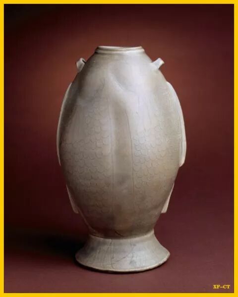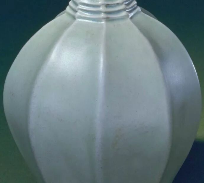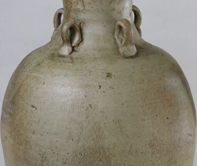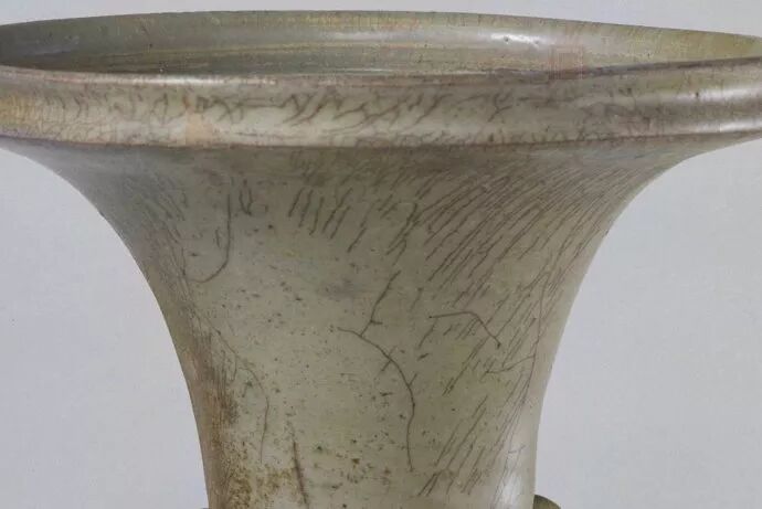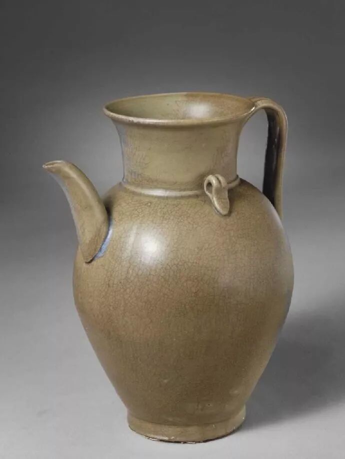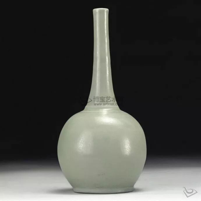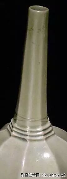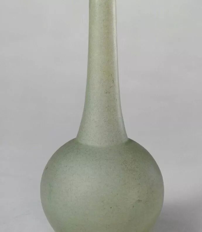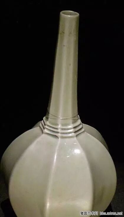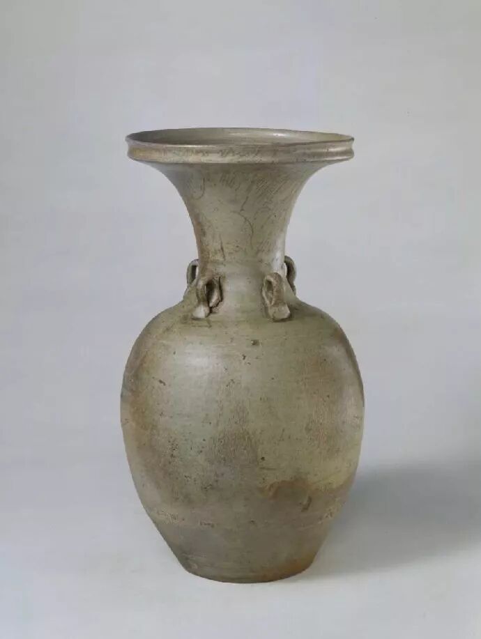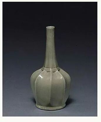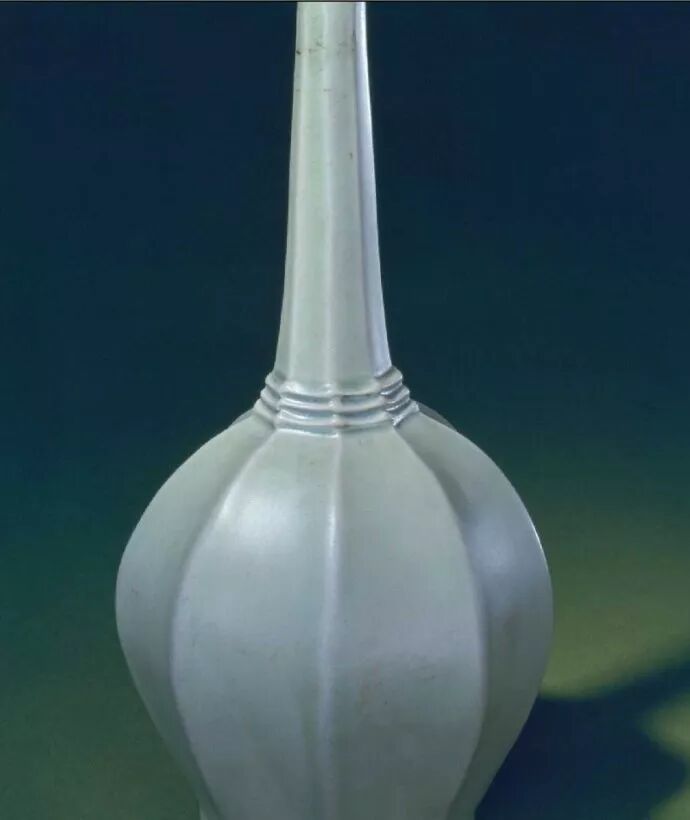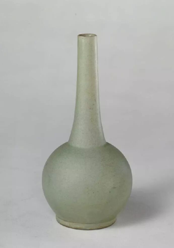 2、唐代越窑秘色瓷直颈弦纹瓶