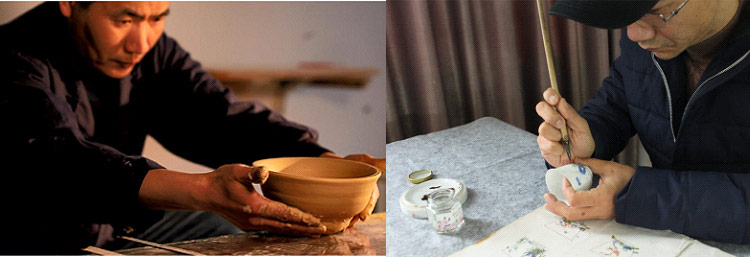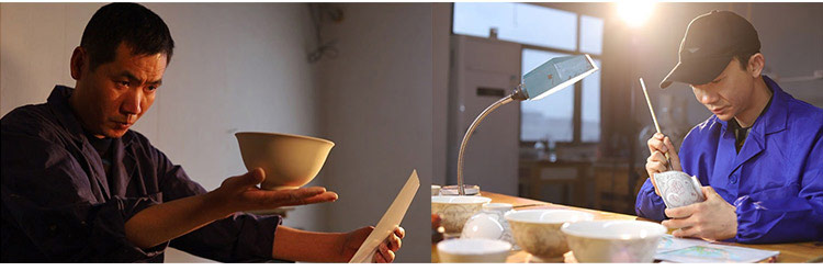 两位老师从古法练泥、拉坯成型、青料彩绘等一一进行全面的研究与传承,利用景德镇出土的各式残破瓷片作反复对比,直至达到最大程度的还原工艺要求为止。![]()