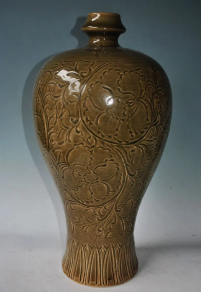 例如磁州窑所产梅瓶短束肩、颈卷唇小敞;宋代龙泉窑的梅瓶有柱状长颈,口略微出沿;更有斜梯形口的梅瓶等。