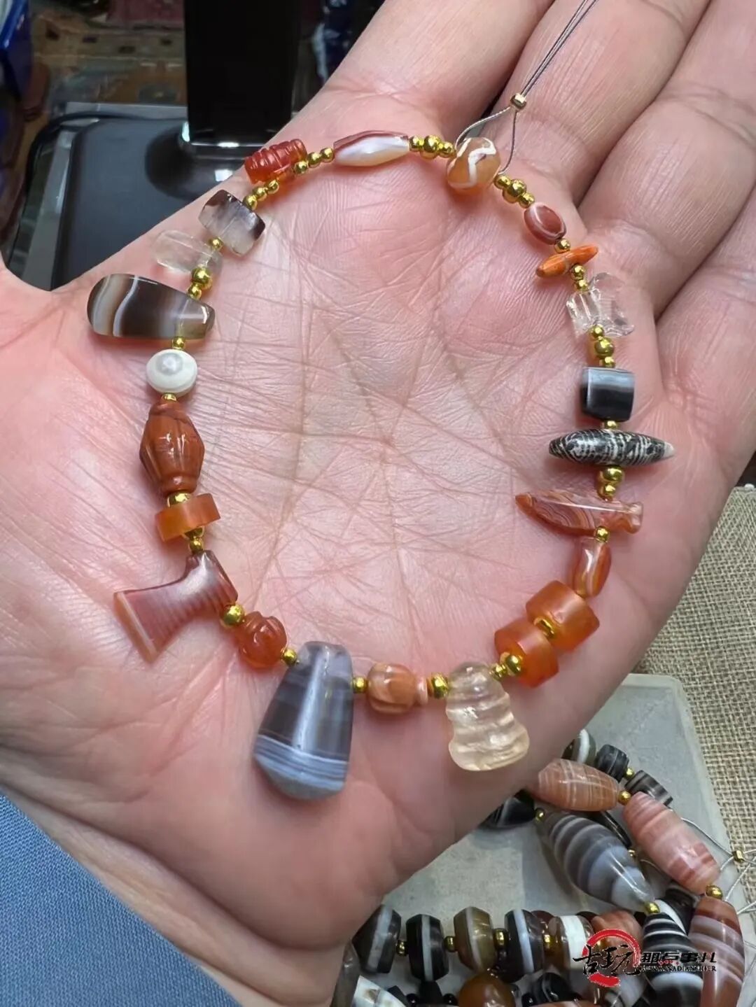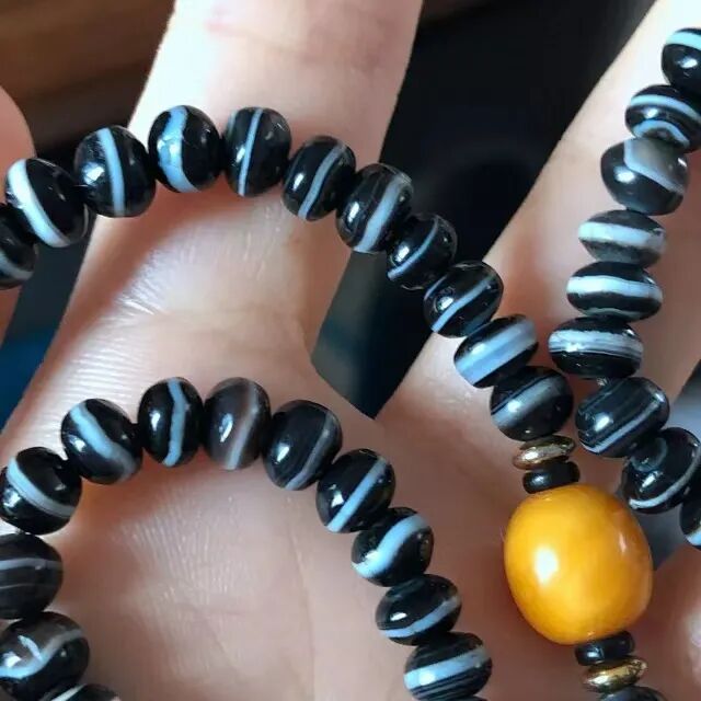 【古玩那点事儿】千年缠丝玛瑙多一线药师珠搭配老蜜蜡松石设计项链