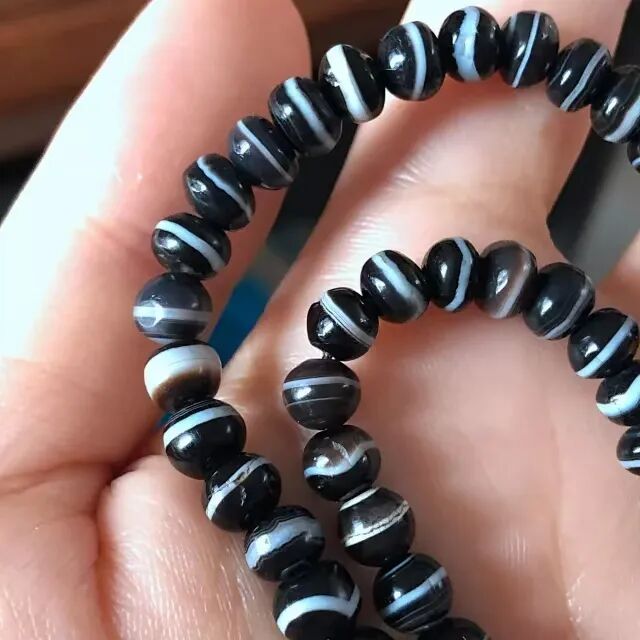 这里要提及一点,老天珠族群里有一小波极其少佩戴的珠子,还有无孔的。这些珠子的风化极其不明显,新老真伪只能靠天珠独有工艺形成的色泽去辨识,这对很多人是极大的挑战。如果你遇到此类珠子,水平不够建议选择避让,别和自己较劲,去买自己拿的准的。