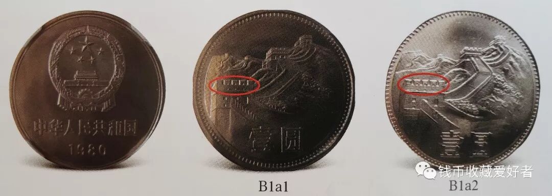 1980年长城币共有三个版别:普制币、样币(半精制币)和精制币,其中普制壹元币还分为有砖版和无砖版。