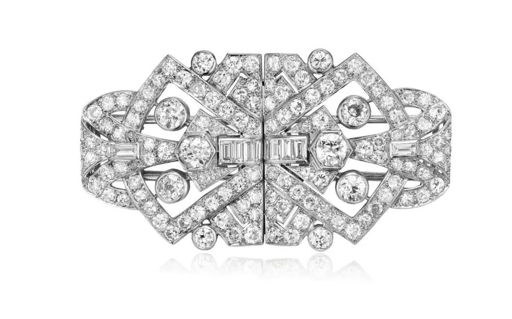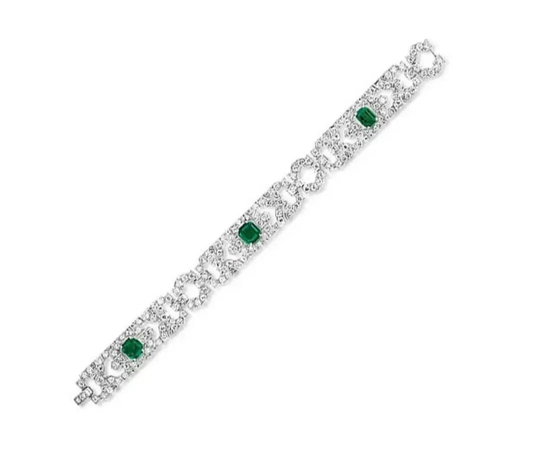 总重量3.64克拉天然哥伦比亚祖母绿配钻石手链,装饰艺术时期