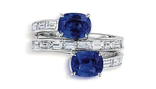 珍罕的总重量4.40克拉天然喀什米尔未经加热蓝宝石配钻石戒指,梵克雅宝