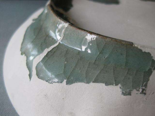有人会问为什么烧成后是无水的?我相信会有人问,因为有些古瓷大师鉴定古瓷器时就指出,某窑古瓷所产生的鼓包,就是第一次水没有烧出来,所以复烧时水出来,形成了鼓包并以此为鉴定依据之一。但是这里想说,都烧到1200度了。胎釉里的水,还烧不出来么?