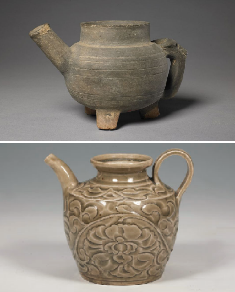▲ 北宋耀州窑青釉刻花缠枝牡丹纹执壶