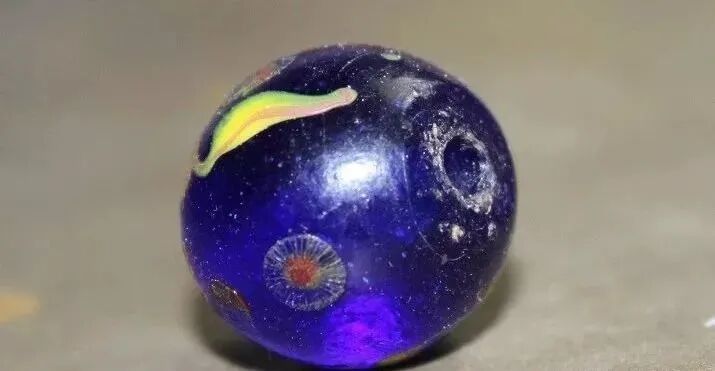 例如:宋代时期曾经烧制过一种呈现螺旋形盘绕形状的高铅琉璃珠,是专门用于海上贸易的。这种驻足的造型极有特点,多为蓝色,当时,制作这种造型的珠子,很有可能是为了区分或者替代另外一种贸易珠。