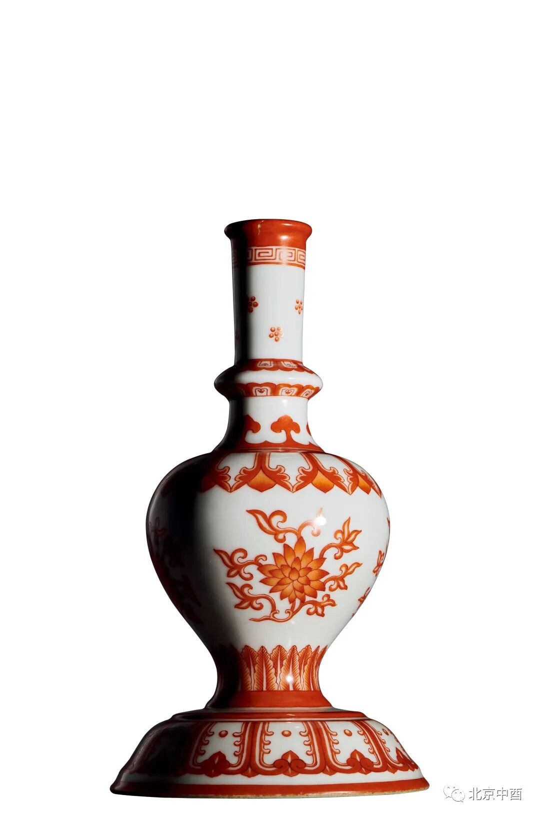 Lot 2022 清乾隆 矾红折枝花卉纹甘露瓶