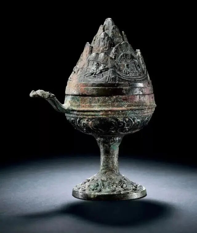 西汉中期,皇帝又开始了疯狂地追求长生不老之术,他们跟秦始皇一样,信奉方士神仙之说,博山炉就是在这种风气影响下产生的。虽然我们现在一直叫博山炉。但是实际上,我们从文献上可以发现,现在所见最早的“博山炉”文献大概是宋人吕大临在著名的《考古图》中所著录的,他写道:“炉像海中博山,下有盘贮汤使润气蒸香,以像海之回环。”